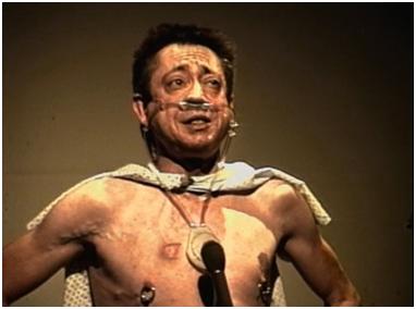 “In a bizarre alternative universe kind of way I sort of resemble Superman. . . . [D]espite my skinny physique and frail sensitivities, I possess certain powers and abilities far beyond those of so-called normal human beings. I was born with a genetic illness that I was supposed to succumb to at two, then ten, then twenty, and so on. But I didn’t. And, in a never-ending battle not just to survive but to subdue my stubborn disease, I’ve learned to fight sickness with sickness.” (Bob Flanagan, quoted in Kilpatrick 1998)