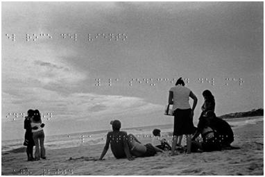 Nigenda calls the images “Fotos cruzados,” intersecting photographs. In fact, each photograph is a double blindness. (Or is it a double vision?) Nigenda needs a sighted person to describe the photograph, but the sighted rely on Nigenda to read the Braille. Both transactions are required to create or to read Nigenda’s images. The images unify the graphic representation of photographs with the coded writing of Braille. They make a light-sensitive material sensitive also to touch. But they perform an additional trick: they construct—even require—a bridge between the worlds of the blind and the sighted.
