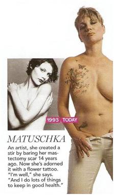 Matuschka exhibited image and text together as a way of exploring her experience and sharing it with other women; her philosophy is that breast cancer is something that needs to be addressed openly and not hidden or hushed up: