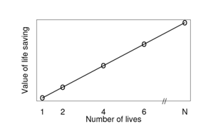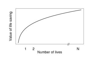 In considering the value of human lives, Slovis suggests a number of models – one where the value of life saving increases in direct proportion to the number of lives that need to be saved, and a second one where large losses are disproportionately more serious since they threaten the viability of a community.