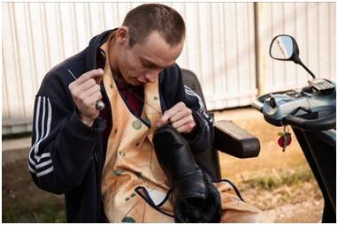 This time when I arrived Adilzhan was hard at work, resoling a pair of boots.