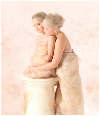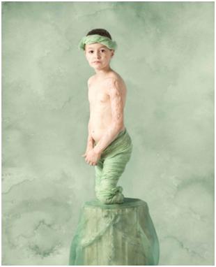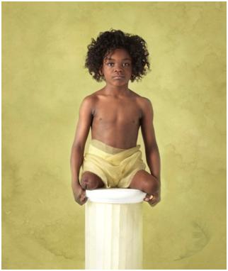Geddes is foremost a photographer of children, especially infants, under very soft ethereal lighting. Her website states that she shows the “beauty, purity and vulnerability of children“. Her images have a kind of diaphanous cloudlike quality about them. In collaboration with Novartis Vaccines and the Confederation of Meningitis Organisations (CoMO) she took a series of images of disabled people who had suffered from meningococcal disease in infancy, and has quite literally put disability on a pedestal: