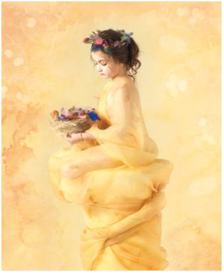 I like the idea of combining the photographs with text, and although I do not produce such stylised images, I can appreciate her skill as a studio photographer and creative artist. Geddes says that she has incorporated the idea of a birds nest in each of the images, and this is at times more obvious than others. According to Geddes, for her “…a beautiful little bird’s nest, and the ingredients used in its building represent love, nurture, family, protection, hope and, most importantly, a deceptive strength.”
