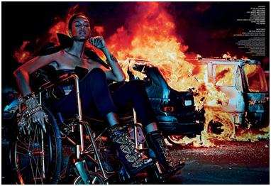 In one of the images it appears as though Auermann is an amputee! “A woman who wears these kinds of shoes has a tough time walking by herself,” Newton is quoted as saying in the article. Apparently the article was largely regarded as offensive, although some found it empowering!
