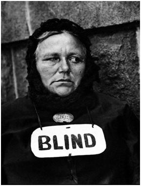 Attitudes have thankfully moved on from the ways that disabled people were viewed in the past (just how much is a matter for debate). In the tradition of the Elephant Man, disabled people were often ’employed’ as sideshow exhibits in travelling circuses. How much of this was enforced ‘slavery’ and how much was resignation and an attempt at empowerment (at least financial independence) is the subject of debate (“after all, what else could the poor folk do?”). At the same time, renowned photographers have made points through photographing disabled people: from Paul Strand’s now iconic image of the blind woman (peddler? beggar?) through to Arbus’s images of the physically deformed and ‘mentally retarded’. It seems to me there are two main positions, that of inspiring shock (and you thought you had it bad – take a look at this!) and that of evoking pity (charity); as Lennard Davis put it, the viewer “gives thanks for not being disabled (as in ‘I cried that I had no shoes until I met a man who had no feet’)” (1995, p2).