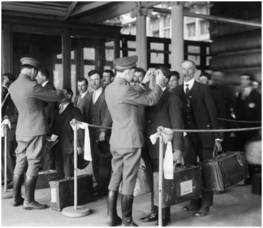 In the US, the main concern was with the dilution of Anglo-Saxon stock with undesirable genes from Eastern Europe: “Eugenic reasoning in the United States had it that if immigrant deficiencies were hereditary and Eastern European immigrants outreproduced natives of Anglo stock, then inevitably the quality of the American population would decline” (Kevles, p 327). Douglas Baynton (2001) writes that prior to the Immigration Act of 1924 that introduced a quota system restricting numbers of immigrants from certain parts of Europe, “ethnicity and disability overlapped“, nationalities were stereotyped as mentally defective (‘slow-witted Slavs’ and ‘neurotic Jews’), while a long list of ailments and impairments, both physical and mental, was drawn up in order to screen out and reject ‘degenerate’ immigrants from ‘inferior nations’ on ‘medical’ grounds (ostensibly employability, but also out of eugenic considerations), which were usually determined by appearance alone (2001, pp 45-50). On the subject of stigma, Baynton also notes: