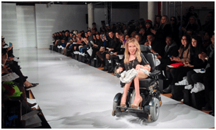 Fashion designer Carrie Hammer has engaged fully with the debate about ultra thin model types, and in Febraury 2014 she unveiled her fall collection using models with ‘dysmorphic body types’ and even included one model in a wheelchair. According to The Guardian, this was the first time a wheelchair-bound model had appeared on the catwalk. Danielle Sheypuk said in the interview: “…people with disabilities are considered to be not sexy, asexual, pitiful, helpless, and frumpy just to name a few. This terrible image is the complete opposite of what fashion is trying to represent. These stereotypes simply are not true and people with disabilities are consumers of fashion – which is exactly why more designers should have the foresight that Carrie had and incorporate models with disabilities.”