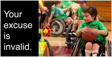 The idea is that images show disabled people doing regular activities, but they are necessarily captioned with words like “What’s your excuse?” or “Before you quit, try…”