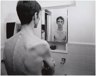 It seems to be one of those books that people don’t quite know how to react to. It is as if the images somehow needed to be taken, a necessary document, but the horror of looking at them is an overwhelming experience. Part of the problem lies in the disease itself and how it is spread – as Sontag (1989, p 24-25) points out, in the Western hemisphere at least, AIDS is considered a disease of ‘certain risk groups’, and contraction unceremoniously reveals an identity that may otherwise have remained concealed from society. Of course, the critical problem with the work is that all the subjects ultimately die, and so we are left with the banal equation AIDS=death. Once more, as the individuals approach death, Nixon moves in closer with his camera. It has been noted that since Nixon uses a large 8×10 view camera, the closer he moves in, the more his subjects are actually looking at themselves reflected in the lens, contemplating their own demise.