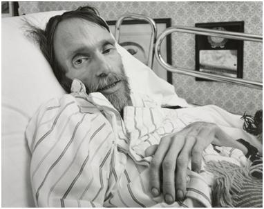 On the other hand, since Nixon covers the people he photographs over an extended period of time and gives them names, and photographs them in a very intimate way, the opposite could be argued: “Nixon never treats the AIDS patients he photographs as cases or specimens to be examined dispassionately, at a distance… [Tom Moran] is a human being, not a statistic, not a convenient object for moral judgment. In these photographs, Nixon insists on the individuality of the people he depicts.” (Charles Hagen, Artforum 27)