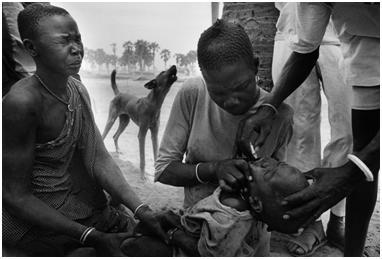 Apparently Salgado was invited by the WHO and the vaccine manufacturer Aventis Pasteur to document the manufacture and administering of the vaccine in the remaining 7 countries where the virus still existed (it has now been reduced to just 3: Pakistan, Afghanistan and Nigeria). From the UNICEF website Salgado is quoted as saying: