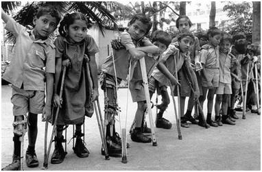While I was searching for Hine’s images of disabled people, I came across the publication The Body At Risk by Carol Squiers, which not only has many of the Hine pictures of child labourers and occupational victims, but also made reference to Salgado’s images of the eradication of poliomyelitis. Although I have looked at Salgado’s work before, and even watched a couple of documentaries on him, I had never even heard of this series of pictures.