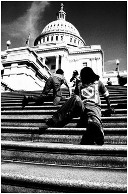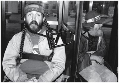 Some of the images are available online through a retrospective hosted on the New Mobility website. The images deal firstly with activism, in particular the 1990s campaigns around Capitol Hill, where people in wheelchairs climbed the steps or chained themselves to objects of oppression such as revolving doors: