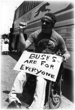 Once the ADA was passed in the US, things began to change, and the photography becomes brighter and more positive; Capitol Hill is now accessible by lift, and there are doors accessible to disabled persons installed in the city: