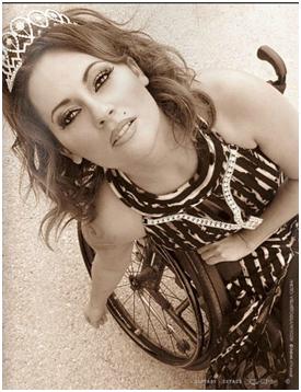 Another site that celebrates the beauty of women despite their disability is the online magazine VOL•UP•2, dedicated to women who are ‘plus sized‘ – this is an issue that is coming more and more into debates about the unrealistic standards of beauty that are promoted in the media and then forced onto women. As a result of this ‘normalising’ body type, very often the disability debate has crossover with the feminist cause. The entire magazine is a celebration of bodies that differ from the ‘accepted’ norms and notions of beauty (as such it could be viewed as a feminist magazine, though its creator plus-sized model Velvet D’Amour does not position herself as a feminist, and the site claims it is merely dedicated to encouraging its readership to “revel in their every “imperfection” and celebrate their bodies in their glorious entirety“. Each issue has a feature from their Differently-Abled Correspondent, which is either a feature on or a fashion shoot with a disabled model: