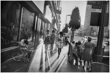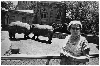 Unfortunately, this is the only image that Hevey analyses, although he does mention that there are six in the book he selected ‘randomly’ from the shelves in a bookstore. I don’t have a copy of the book that Hevey mentions, but an online search turned up the results here. I don’t necessarily want to act as apologist for Winogrand, but I don’t think that he consciously enfreaked disabled people any more than he did any other people that he came across during his manic roving through the streets. He reacted to what he saw, and if that meant that there was some reaction to or interaction with a disabled person, he shot it just the same as he’d shoot other human interactions, as this photograph of a woman and a blind pencil peddler shows. The enfreakment was created without Winogrand’s mediation or intervention, it was already out there in society. In fact, one could argue that disabled people in Winogrand’s photographs are no more enfreaked than the other members of society he chose to aim his lens at: