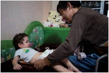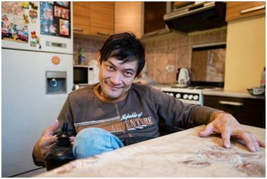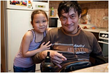 I had arranged with Yernar to interview him at the day centre, since with a newborn baby in the apartment I didn’t think there’d be much chance of getting a peaceful environment in which to record. However, on the day that we were supposed to meet, there was a problem with the InvaTaxi service he had booked, and he was unable to get to the centre. Off the cuff, I asked him if it’d be alright if I came to his place to record the interview. After consulting with his wife, he called me back and said it’d be ok if I came right over, so I threw all my equipment in a bag and rushed over to his place as quickly as I could.