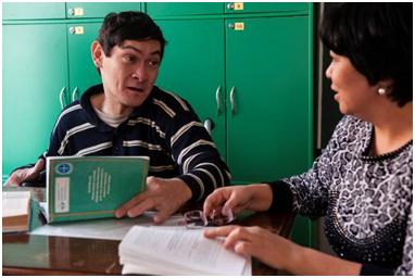 Again, not a visit per se, but we arranged to meet at the centre. Since Yernar is not a full-time employee, he does not have a permanent office, and on this occasion we set up an impromptu office in one of the classrooms. He told me that he gives legal counselling to the parents on issues concerning their children. While I was filming he was discussing some of the rights and benefits these parents were entitled to. Since their own cases are confidential, I asked Yernar to discuss general issues with them while I filmed with the microphone turned on.