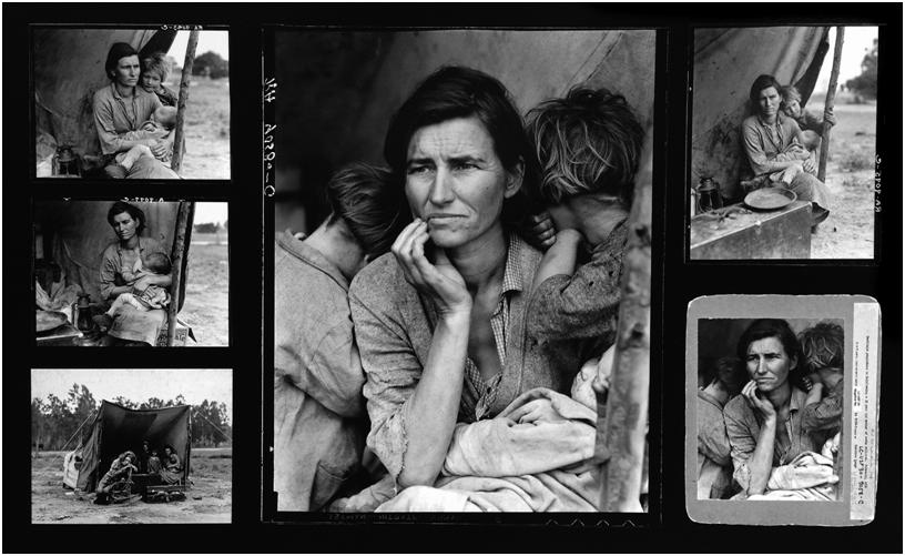 “Although the pictures from the Migrant Mother series were first published in a San Francisco newspaper, the enterprise belongs in the realm of art rather than photojournalism. As the several exposures she took of the scene show, Lange sought to create a transcendent image that would communicate her sense of the migrants’ condition. She created a portrait that incorporated elements she knew her contemporaries would understand and find worthy of support” (ibid, p 2).