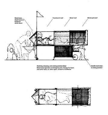 Intrigued about Wodiczko’s homeless vehicle, I decided to look it up: