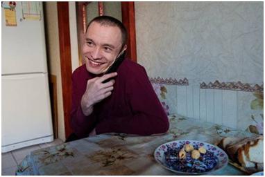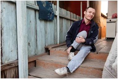 Following on from this, in the final section Adilzhan expresses a personal message to fellow disabled people, telling them not to give up but to keep at it, for the simple reason that at some point in our lives each of us has to fend for ourselves. The images show Adilzhan mixing with other disabled people at the day centre (not sure about the images showing Adilzhan goofing and falling down here – need to discuss), while the final ‘day in the life’ sequence reflects the idea of autonomy by showing him calling a taxi and making his way outside to go on a shopping trip.