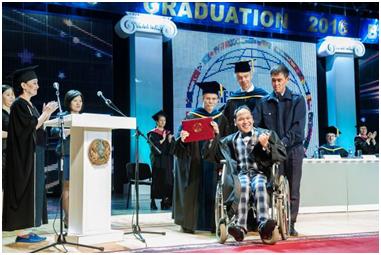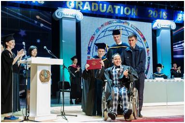 When I arrived at the Palace of the Republic, the audience members had not yet all been seated, but Amanat was already waiting at the front of the auditorium. I got past the security by speaking only in English and waving my camera in their faces; they probably thought I was a foreign photographer invited especially for the event! Once I had found my spot I stayed with Amanat while the graduates sang the national anthem.