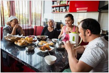 Although some of these shots are really good, I’ll have to see which ones from this session and the previous one are more interesting, since there is a lot of interaction between Amanat and Dameli, while the other family members are absent. Nevertheless, the camera is significant since it represents not only proficiency (hand-eye coordination) but also ‘normal’ everyday activity (family snapshot, hobby) which adds so much weight to my project. I shot the frame of Amanat drinking from a mug from a low angle because Dameli had stuck a joke to the bottom (which is why they are laughing). The joke would be lost in translation, so I decided not to use it. Better are the shots where Amanat is the photographer.