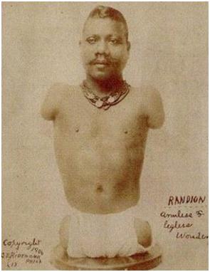 “The exotic mode emphasized how different and, in most cases, how inferior the persons on exhibit were. The aggrandized mode reversed that by laying claim to the superiority of the freak” (Bogdan 1996, p 29). Exhibits were accorded prestigious titles such as ‘Captain’, ‘Major’, ‘Prince’ or ‘Princess’ to make them appear culturally superior. Thus we have the famed ‘General’ Tom Thumb, and ‘Prince’ Randian: