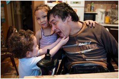This is a really nice portrait of Yernar with his daughter, and her tactile embrace shows how much she loves her father.