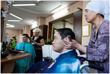 It was quite difficult to get a shot that included the rest of the salon while showing Yernar (since he was seated lower than the other clients) and avoid including myself in the reflection in the mirror!