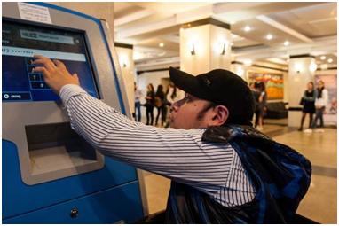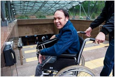 There is a wheelchair service, but as a rule it takes a very long time to get anyone to respond. Amanat thinks this is because nobody really knows whose responsibility it is. Eventually an attendant came to help us out. I asked if he minded whether I took his photo and he was also very forthcoming. Since this is the metro stop nearest the university, Amanat uses it quite a lot, so the attendant knows him and was very friendly and helpful.