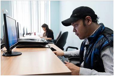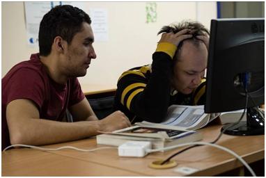 This image works well, since it shows that Amanat is able to access the building, as well as the cash machine being of a height that he is able to use it. The final place we visited was the computer room, where Amanat began working on a presentation that he had to make. I tried out a couple of angles and then left him to it.