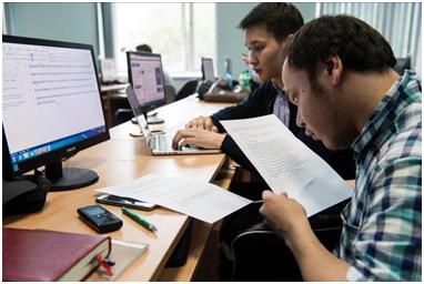 After we had done a few shots in the dorm, we went down to the computer room. The idea was to show Amanat cramming before his finals, with support from Rakhman.