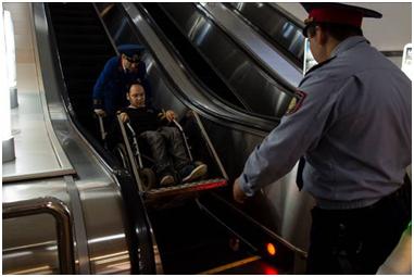 So Amanat had the honour of a police escort down the escalator!! The attendant helped us with the next few flights of steps, some of which are equipped with chair lifts, some of them not.