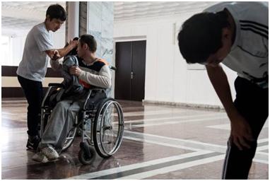 This image captures the frustration of cramming before exams; Amanat’s wheelchair cannot really be seen at all, and this underlines the fact that all students are in the same boat when it comes to exams!