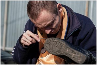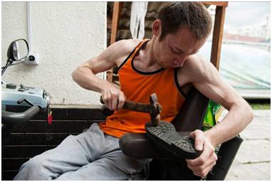 Very soon, Adilzhan’s first real customer appeared – his neighbour who needed her trainers resoled: