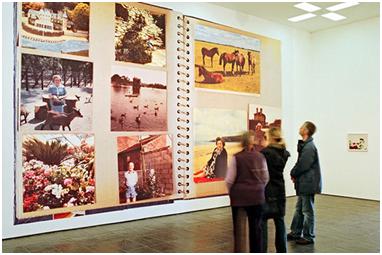 My only qualm is that it separates the material down according to source, rather than employing a strictly democratic technique as was used by the exhibitors of the 9/11 pictures, where amateur and professional images were exhibited side by side with no distinction, and when the images were auctioned there was no authorship declared. I appreciate that the original photographers had to be credited – and may even have had a say in how or which images were to be shown, but adding authorship information at the end would have been the way I’d have gone. He even goes as far as exhibiting the work as poster-sized facsimiles of what appear to be notebooks: