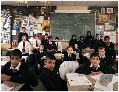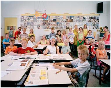 Germain shows different classrooms with different students from different cultures. Th goal is the same, but the clothes and classrooms differ. A really constructive project for cultural acceptance!