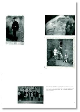 The publication is laid out in a similar way to a scrapbook, with photographs and text juxtaposed without any apparent order or sequence. It includes family snapshots as well as newspaper clippings and photographs from other journalists, including Don McCullin!