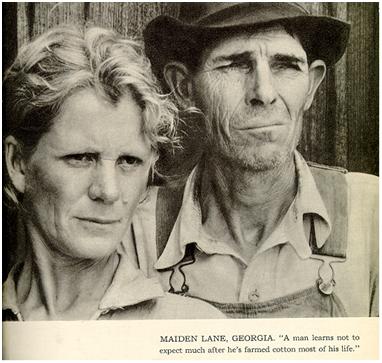 From Robert E Snyder, Spying on Southerners: The FBI and Erskine Caldwell: “He proceeded to expose and condemn a variety of southern shortcomings: illiteracy, disease, and malnutrition, racial prejudice, religious bigotry, a worn-out agricultural system based on sharecropping and peonage, and cultural sterility. He placed the blame for these delinquencies on a repressive and exploitative hierarchy of politicians, planters, and preachers, and called for the federal government to devise programs and policies to ameliorate the lives of Dixie’s forgotten people.” (Snyder 1988, p 257) The people from the South were compared to those from the North, many of whom had cars, on the other hand, as Caldwell said in an interview: “The poor whites in the South didn’t have anything . .. They were stuck.” Which is why the book collaboration was used by the Soviet Union in propaganda about how abject the American citizens were, rather than the film version of Grapes of Wrath, which showed migrant workers owned automobiles! (Snyder 1988, p 281)