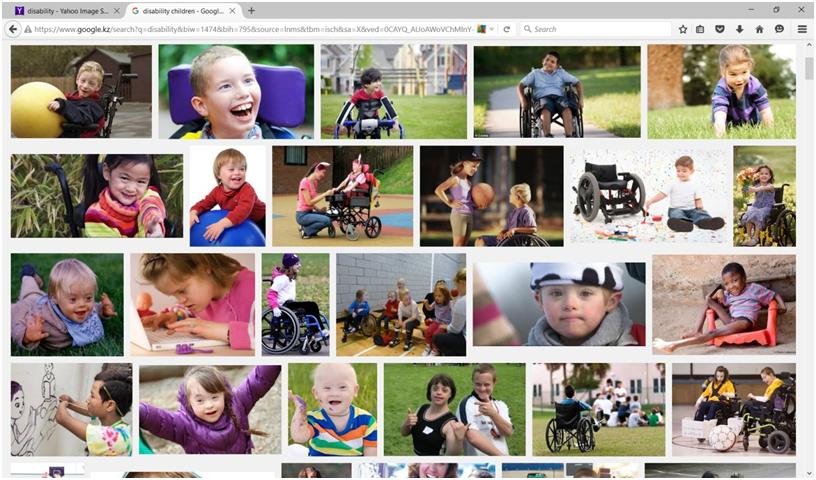 To challenge stereotypes, I need first of all to have researched and understood them. A simple Google search for images of disability + children turned up the following results: