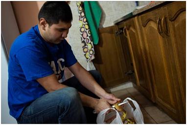 Vasya lives with his mum in a district of the city that is close to the railway station. He is a swimming champion, and has travelled to Ireland to participate in the Special Olympic Games. I have met him on several occasions, and have been struck by his contagious sense of humour. His mother Olga told me that he has got into trouble since he appears normal, but once approached and confronted, for example by the police, he is unable to respond adequately to situations. He agreed to take part in the project, and we discussed a number of things that could be included, such as his swimming practice, going to football matches, working around the home, as well as his relationship with Bota, a deaf-mute. Apart from logistic challenges (Vasya lives quite a long way from my home) the biggest obstacle I can foresee is communication. Since Vasya is oligophrenic, he can communicate with some clarity about concrete things, but with more abstract concepts such as time, he becomes confused. As such, all communication and arrangements will have to be done through his mother, and I’m not sure that she completely understands the project. At the moment I am playing it by ear. I will try to start with a swimming session or football match, and if it works out then we’ll push on. Otherwise I may not pursue this subject. (Nixon’s words ‘Life’s too short’ come to mind, but I’m thinking more about my project timeline than life expectancy!)