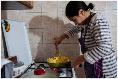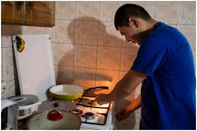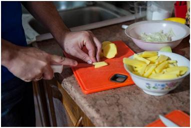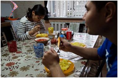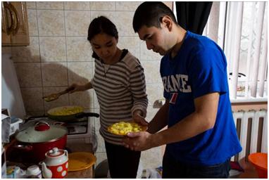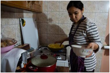 After the shopping excursion we returned home, and Askar began peeling the potatoes.