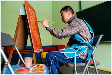 They call him Matisse. Medet has a wonderfully warm personality and is extremely kind and gentle. He loves painting and never seems to tire of it. Although there is no conclusive evidence, it seems that force was applied to Medet’s mother’s abdomen as she was giving birth, which probably resulted in his CP.